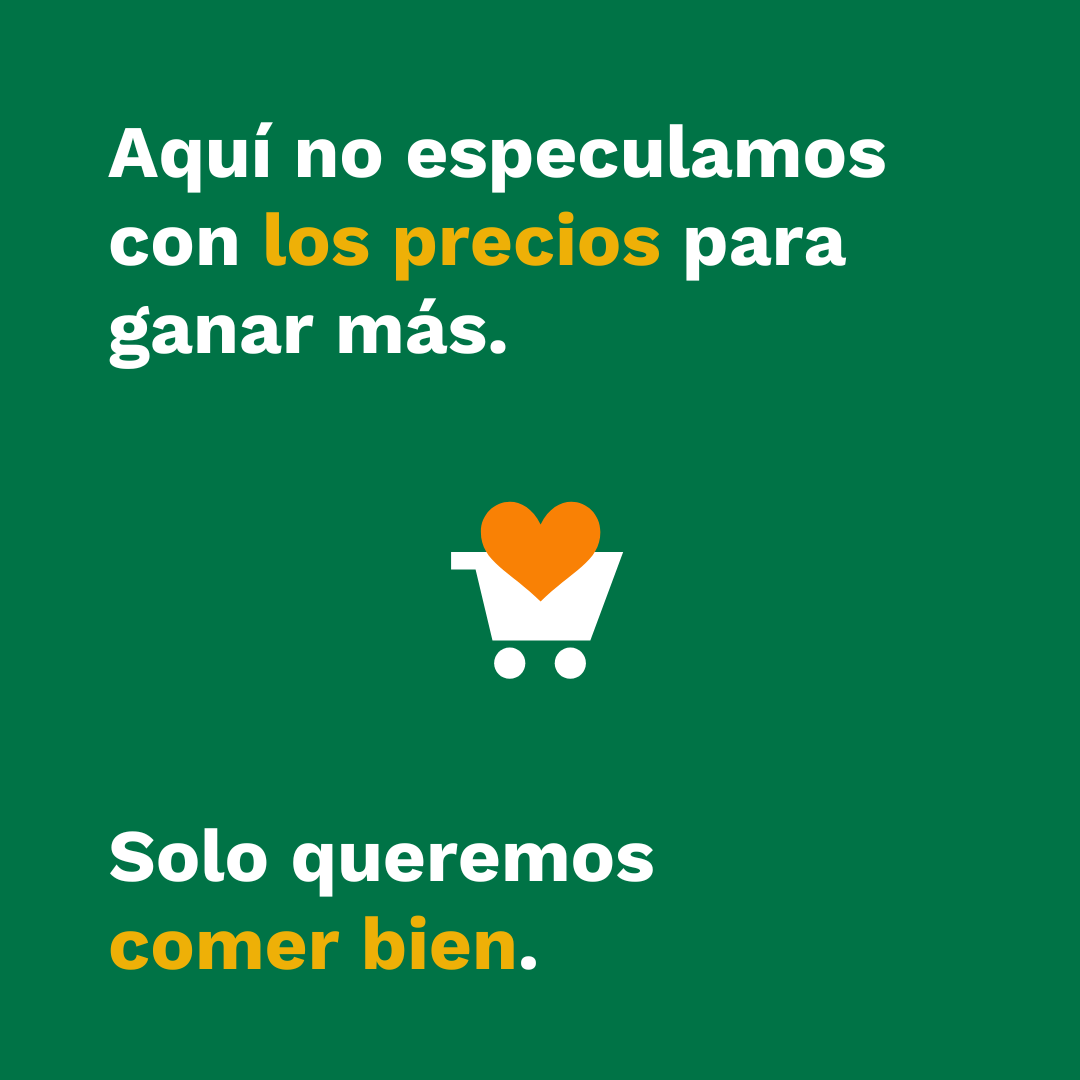 Por eso hemos lanzado una pequeña campaña para informar de que aquí no especulamos con los precios, solo queremos comer bien. Comparte las publicaciones de nuestras redes sociales o esta noticia.